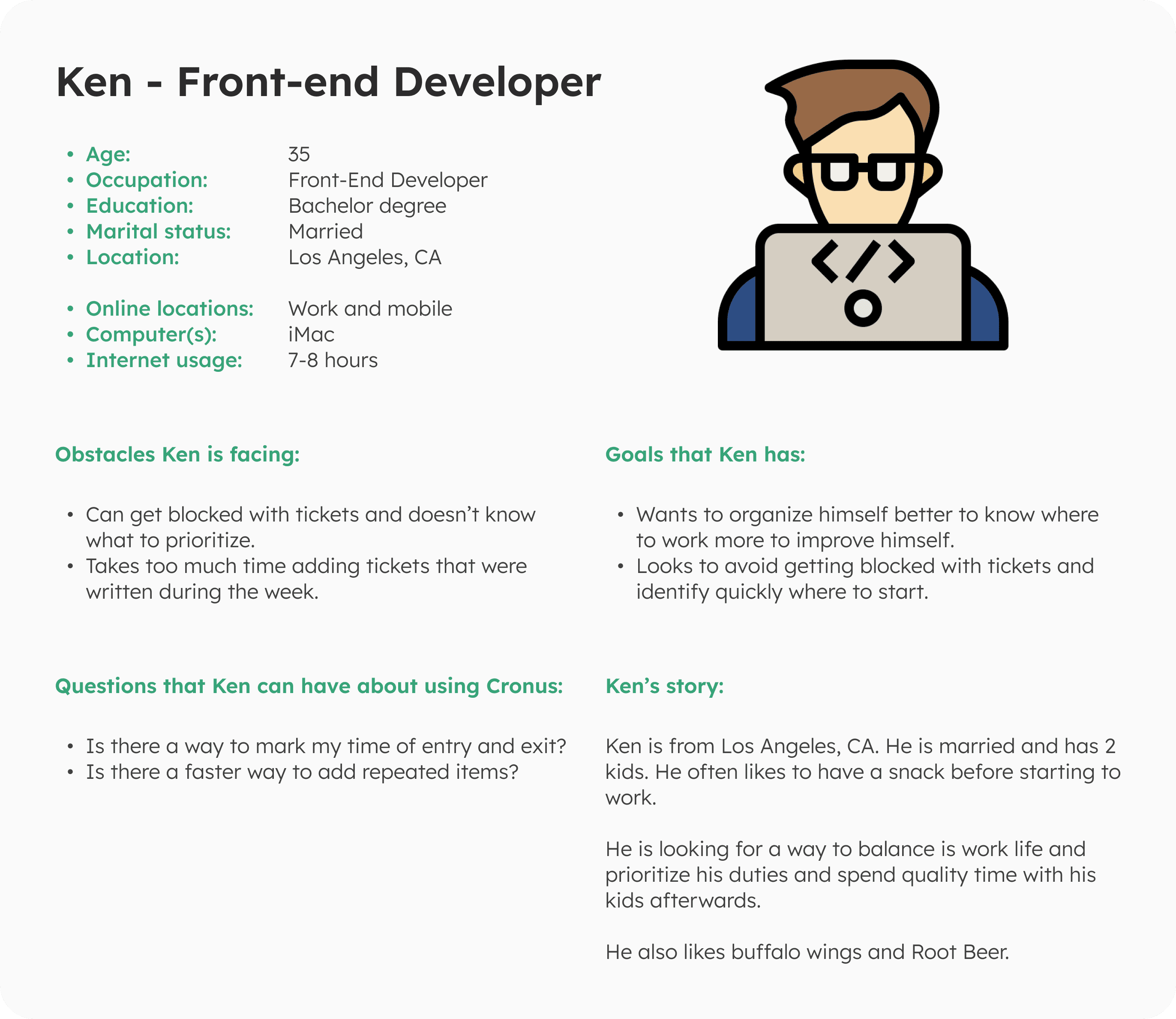 To create the personas, we conducted interviews with multiple members of the company that use the platform to understand how they use it, what they like and dislike about it.
