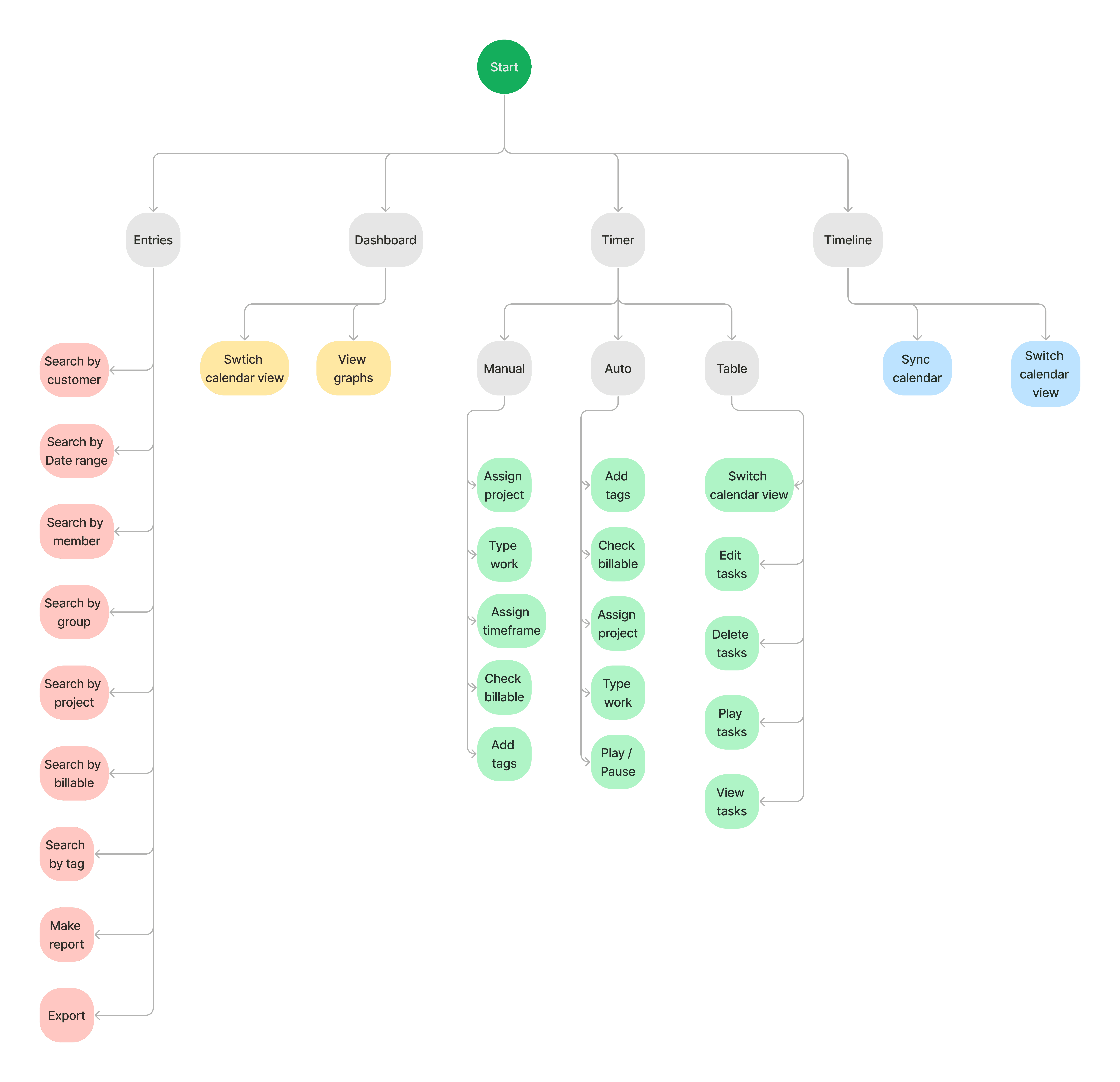 Toggl: Their combination of the timer with the timetable is smart and its color usage helps to identify certain tasks that were handled at certain times. Editing entries can be confusing. Its hierarchy and color contrast are also useful to identify more important elements in the website.