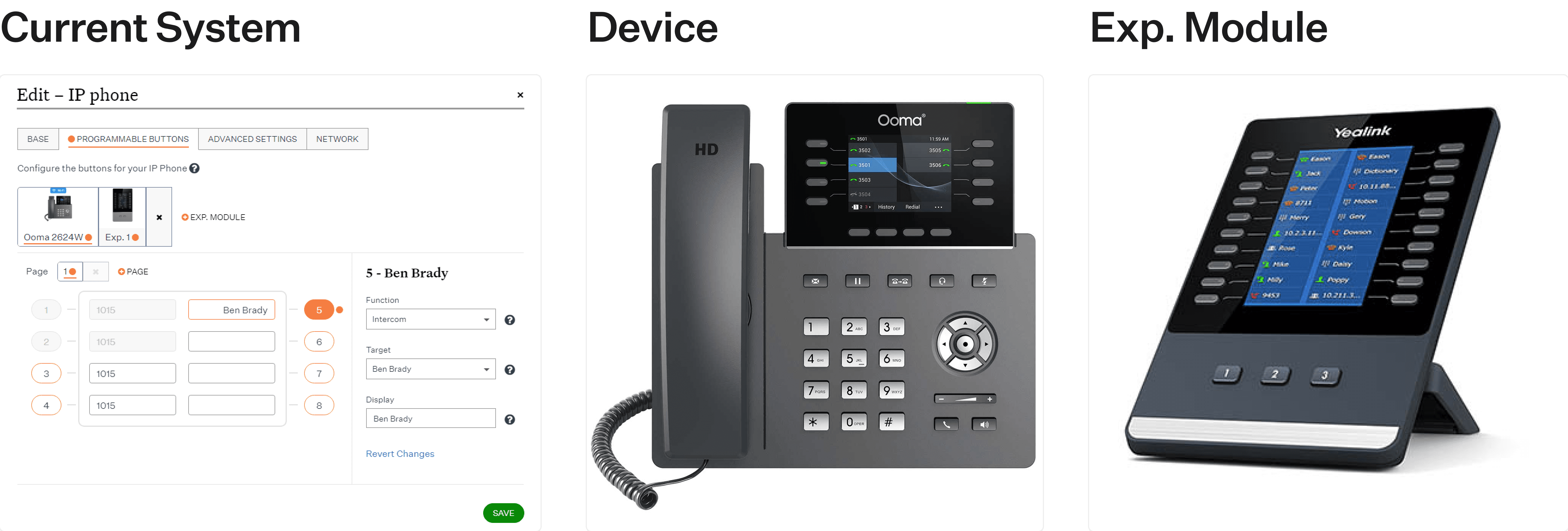 Each device can have multiple pages as well as the ability to attach an expansion module to add more buttons. You can perform multiple tasks such as send contacts to a Call Park, make multicast announcements, among other tasks.